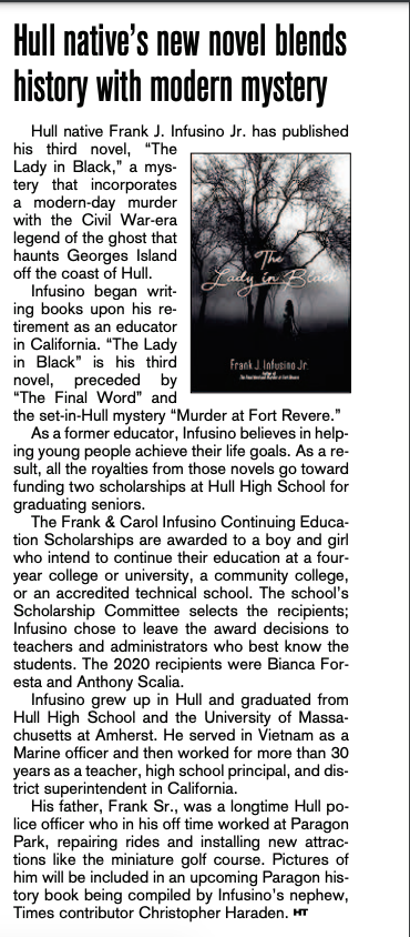 The Final Word - Set in Pacific City, a fictional southern California town nationally recognized for its safety. A promiscuous teenager is murdered: suspects include a respected football coach, family members, an escaped convict and a high school student planning to replicate the Columbine massacre. A white supremacist group within the police department intent on furthering its racist agenda inhibits the investigation, led by a former Marine hero. The murdered girl was seeing a therapist for treatment of a sex addiction. Her promiscuity, revealed in her diary and exposed on a homemade sex tape, led to her murder. The lead detective on the case, a widower, falls in love with one of his subordinates who, unknown to him, an undercover FBI agent is sent to investigate the racist cops in the department. Their budding relationship is derailed when she is slain by one of the racist cops leading him to exact revenge outside of the justice system in a manner reminiscent of how he gained Marine Corps fame as "The Ghost." This debut novel, The Final Word by Frank J. Infusino Jr. is sure to keep the pages turning. Frank is a former Marine Captain with service in Vietnam. Frank also served as a teacher, high school principal and public school superintendent in southern California for many years.